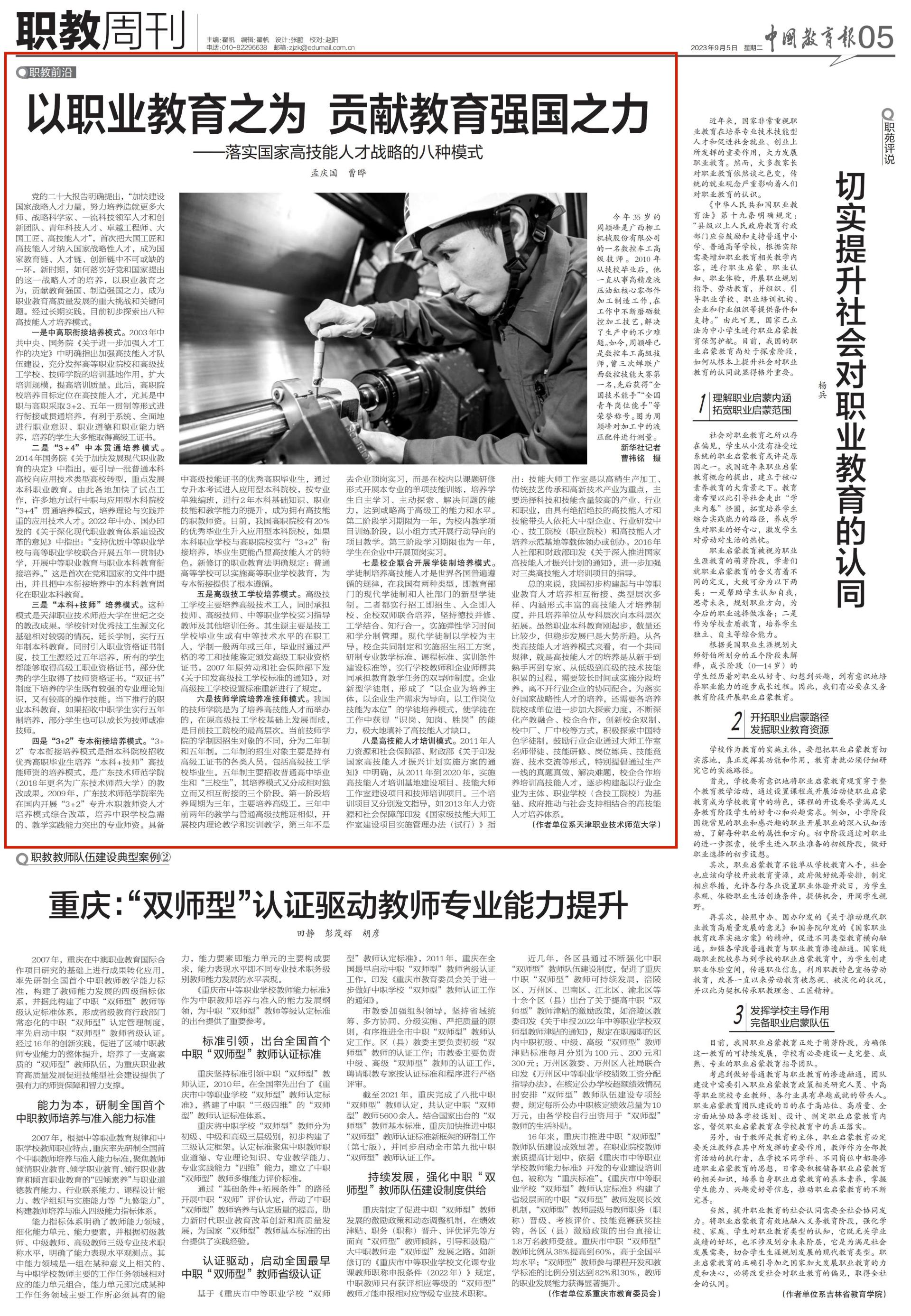 中国教育报:以职业教育之为 贡献教育强国之力